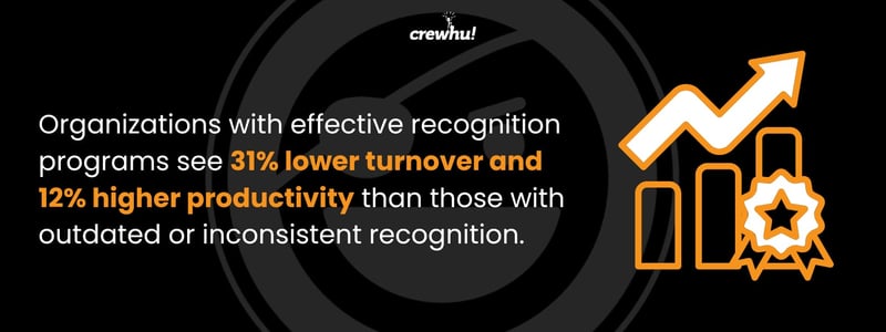 That approach comes at a cost. Organizations with effective recognition programs see 31% lower turnover and 12% higher productivity than those with outdated or inconsistent recognition. When recognition isn’t tied to meaningful results, employees don’t know what earned it, what should be repeated, or how their work connects to outcomes like CSAT, SLA performance, utilization, or retention.